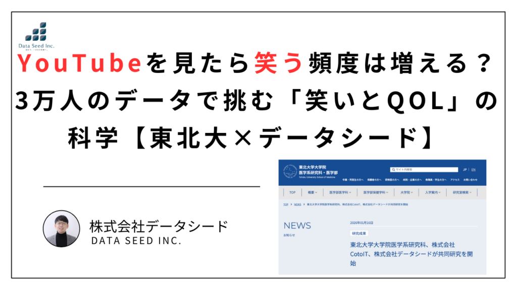 YouTubeを見て笑う人は本当に幸せか? 3万人のデータで挑む「笑いとQOL」の科学【東北大×データシード】