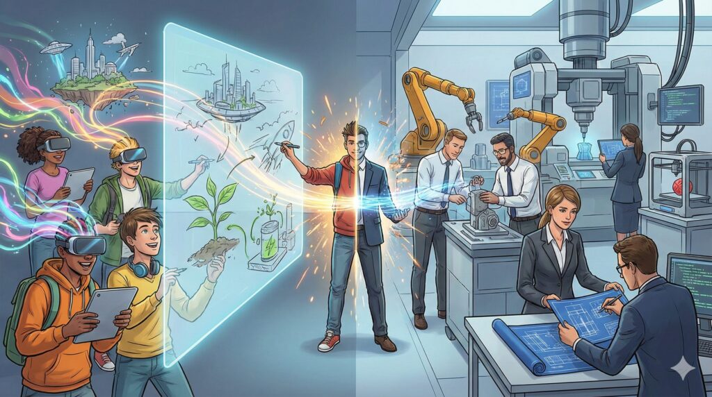 一方、企業(プロ)は、そのアイデアを形にする技術とノウハウを持っています。 学生の柔軟な発想(妄想)を、企業の技術力で形にする(実装)。 この「プロ×素人」の化学反応こそが、イノベーションの源泉です。
